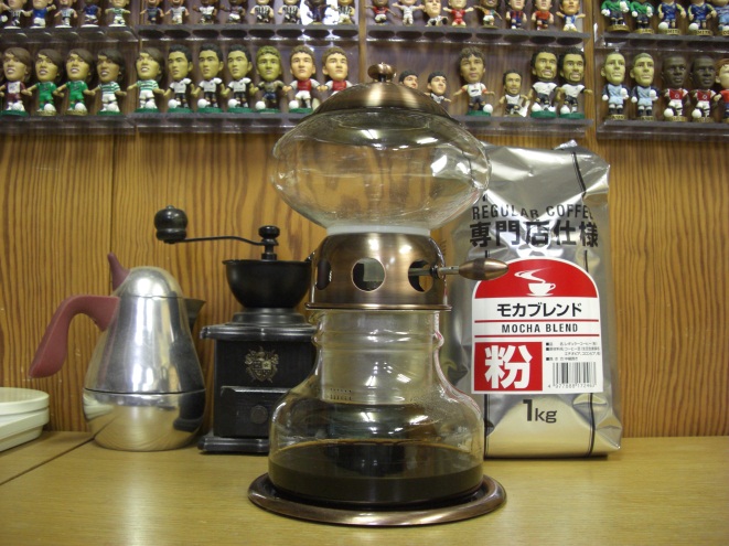 水で抽出する水出しコーヒーのことである。ランプや砂時計みたいだが、上部ガラス器に水を入れると下部ガラス器に一滴ずつ落ちてくる。スピードは調節して、自分好みの