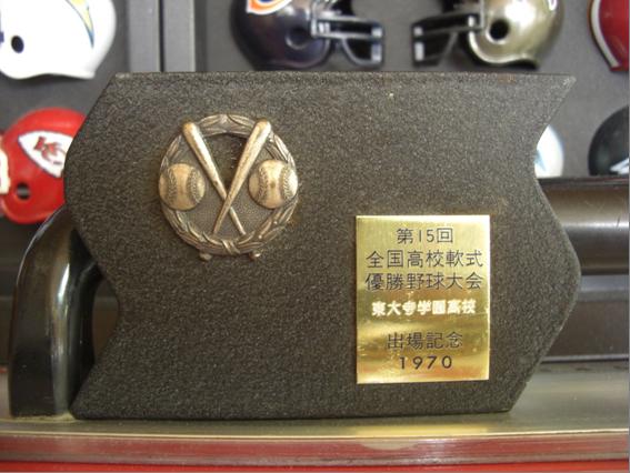 1970年「第15回全国高校軟式優勝野球大会」に出場した。入場行進は藤井寺球場。一回戦はPL球場で、長野の松商学園に2−0で完敗だった。インコース高めの絶好球の