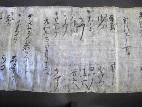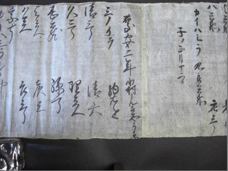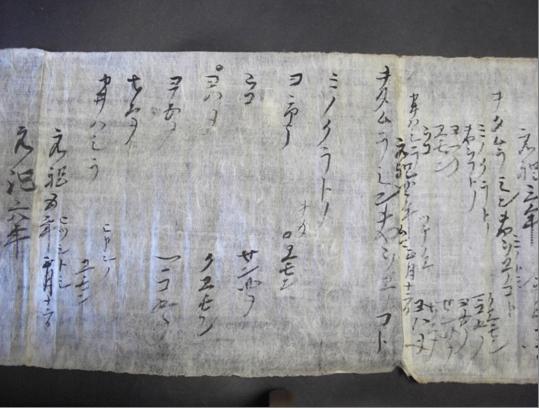 『キタムラシンキヤウエノコト ミノクラトノ ヒカシキヤウ一郎 キタエモン ウマ ヨ一郎 セン四郎 ヨ七 才二郎 カヰハシラヨ八郎 キタムラヲノヲノ キヤウチヨ十五子