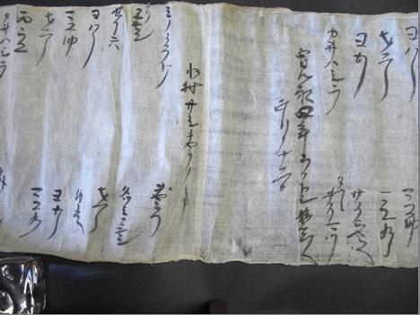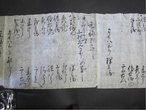 キタムラシンキヤウエノコト ミノクラトノ キタエモン ウコ ヨ一郎 セン四郎 ヨ七 ヨ八郎 才二郎 カ井ハシラ ヒカシキヤウフ キタムラヲノヲノ キヨチヨ十