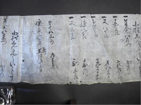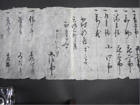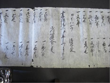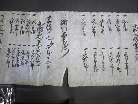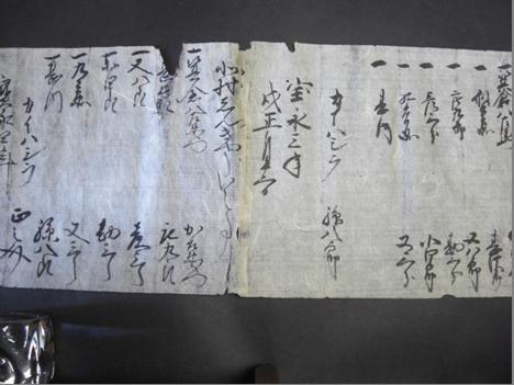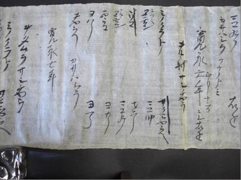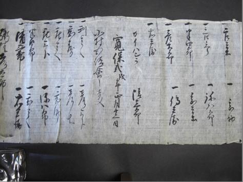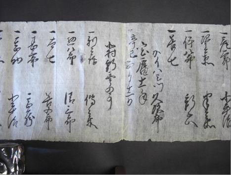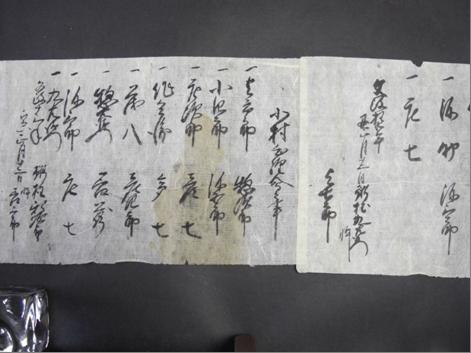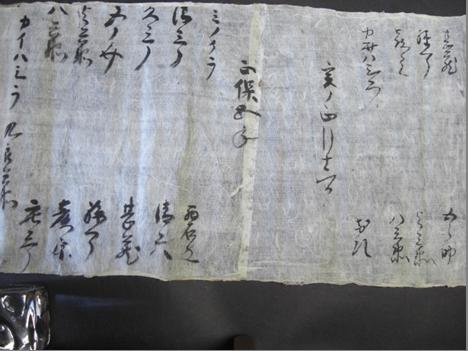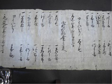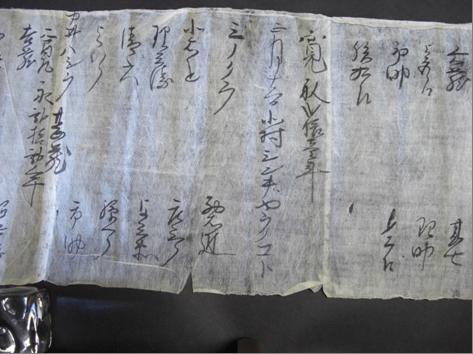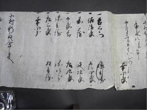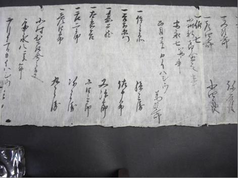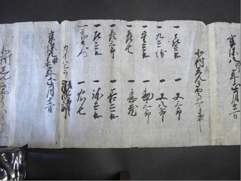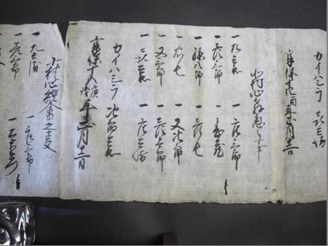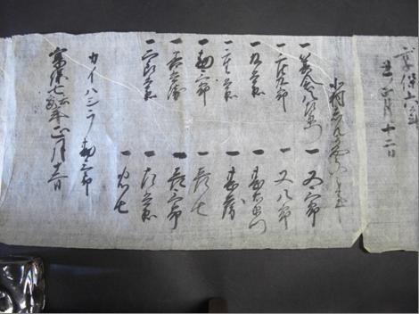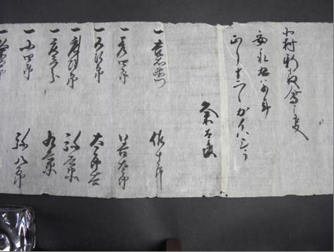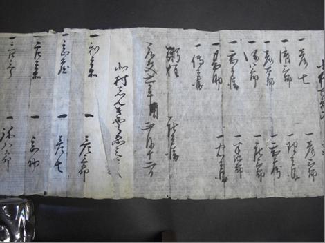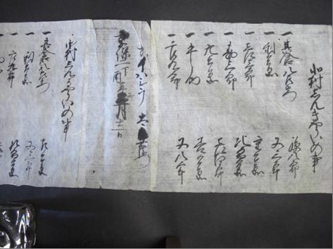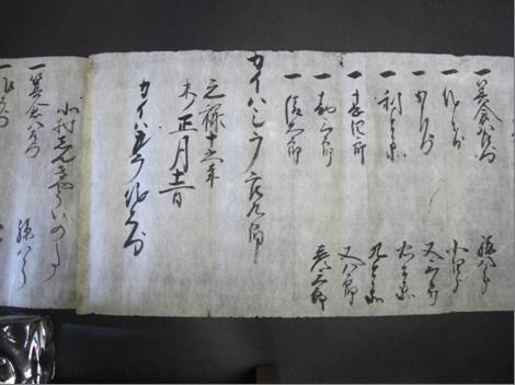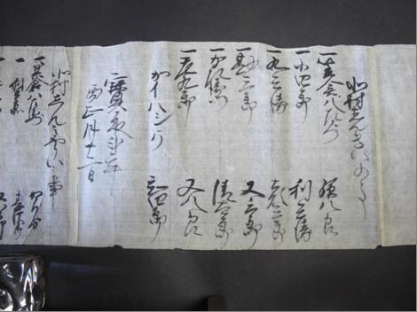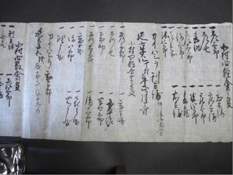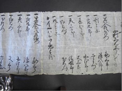 ちなみに6名の 反合計・石高合計・田畑枚数を記してみよう。 キヤウフ「形部」 19.7反 26.5石 28枚 セン四郎「善四郎」 13.5反 17.2石 22枚