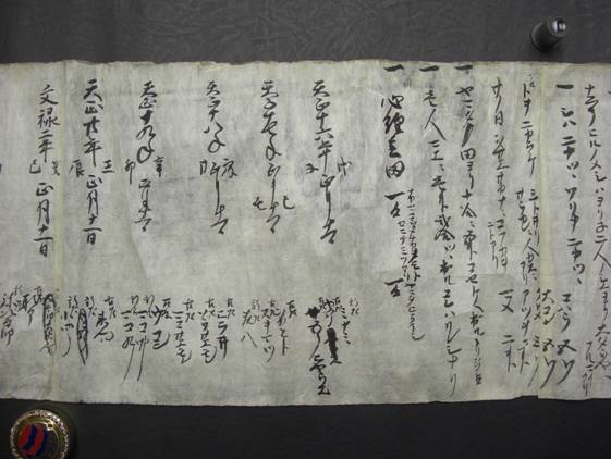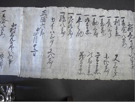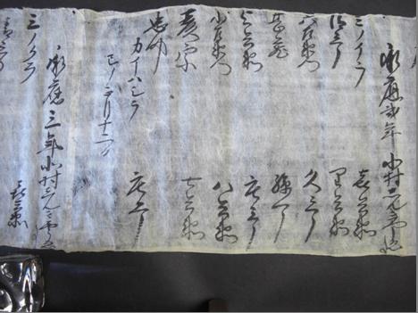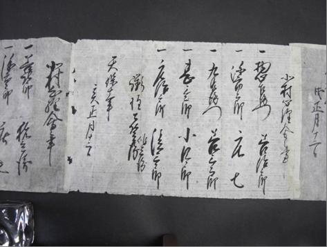 文禄四年(1595)九月 小堀新助(京都の有名社寺作庭で有名な小堀遠州の父)の命によってつくられた茅原村検地帳の写し(本帳は不明「2010年検地帳」参照)である。