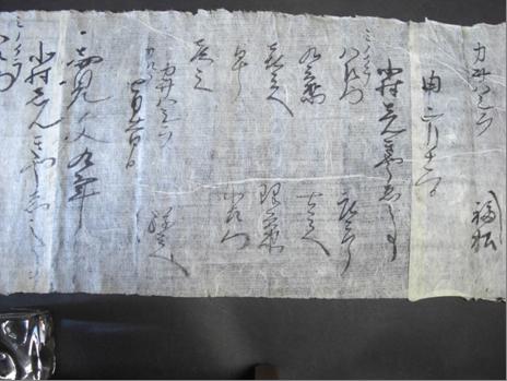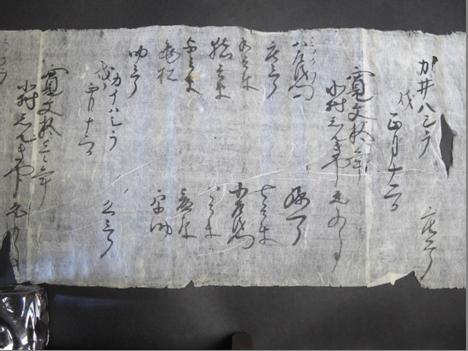 キヤウフ キタエモン 与八郎 セン四郎 才二郎 与七 ヨ一郎 ミノクラトノ ミナミウコ カ井ハシラ 慶長拾六年