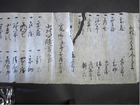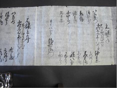 元和六年 キタムラシンキヤウエノコト ミノクラトノ タツミエモントノ ヨ市郎 キタエモン ヨ八郎 セン四郎 九衛門 才二郎 ヨ五郎 マコミエモン ミナミカ井