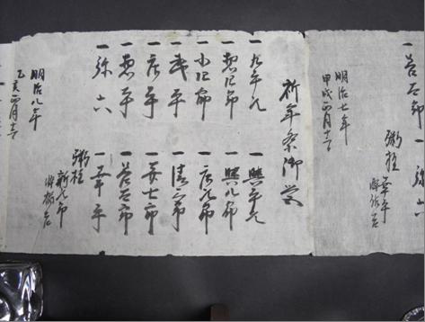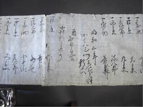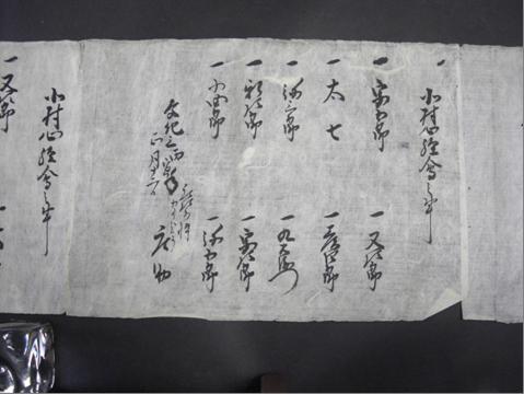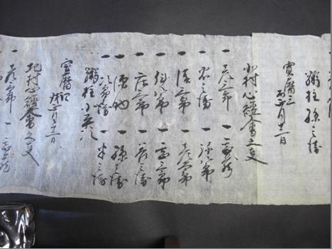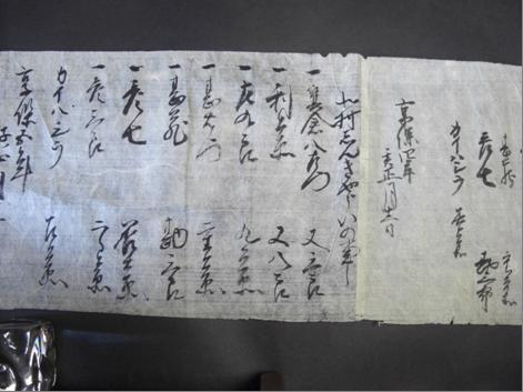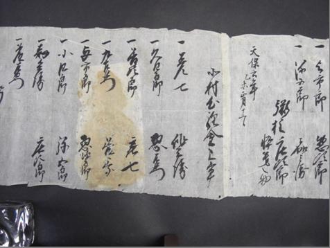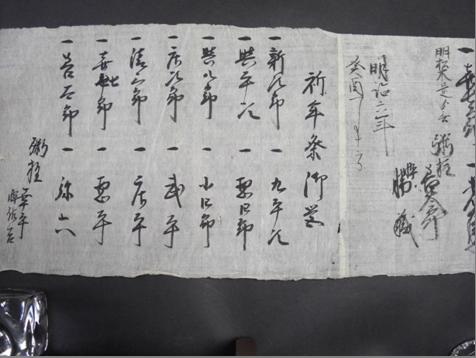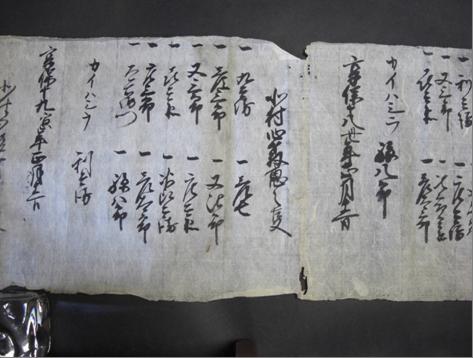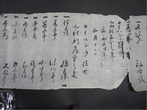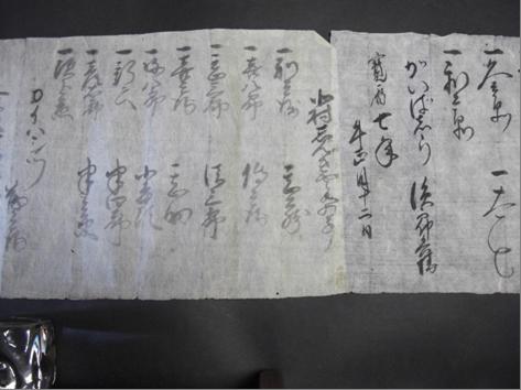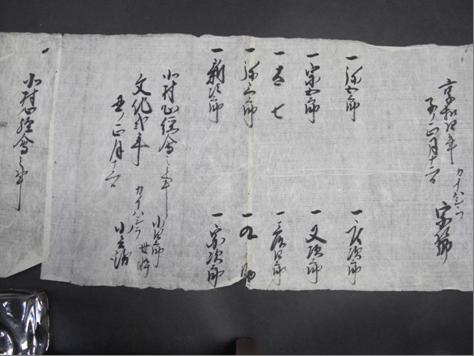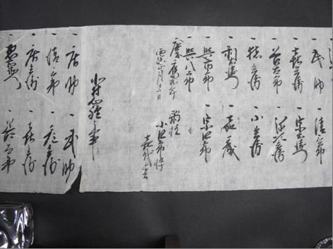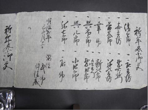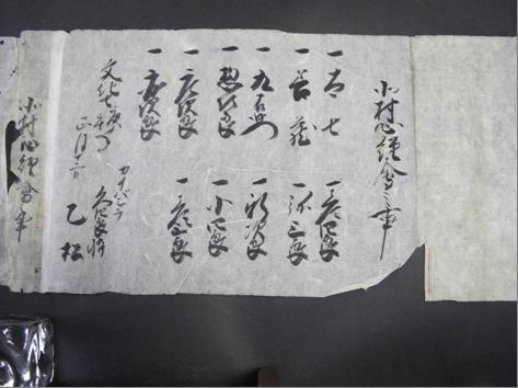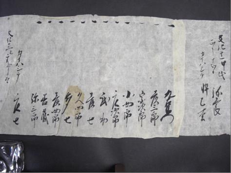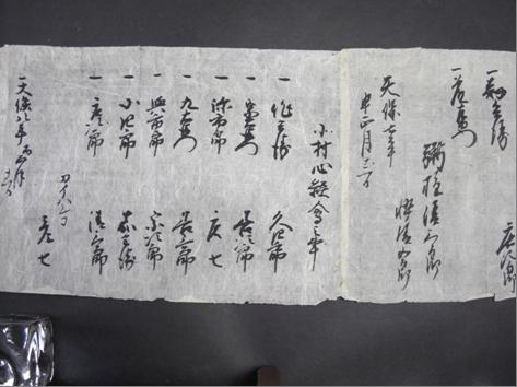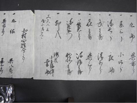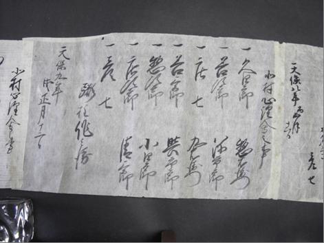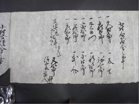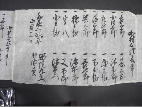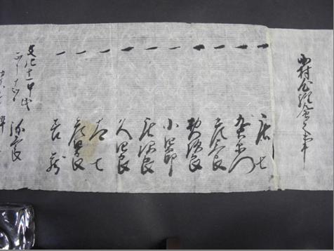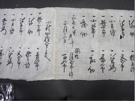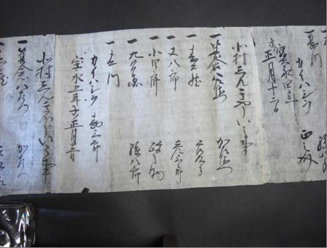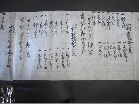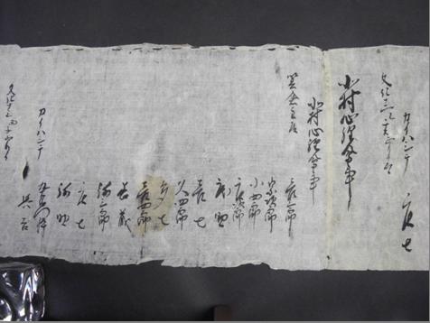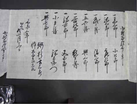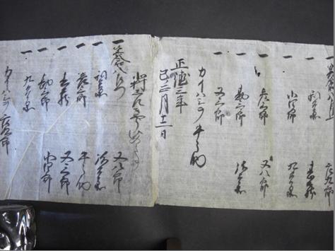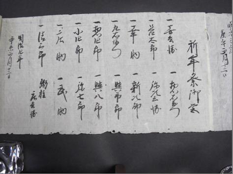 北村神経会之事 箕倉主殿 弥五郎 嘉兵衛 庄次郎 武助 彦七 作兵衛 彦四郎 善蔵 弥三郎 弥助 九右衛門 彦三郎 宗次郎 カイハシラ 小四郎 倅新右衛門 文政弐夘 正月十二日