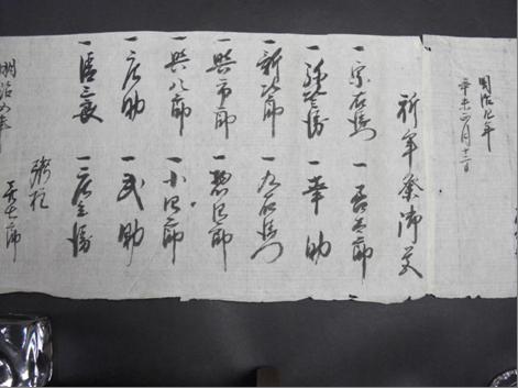 祈念祭御営 新次郎 九平次 與平次 惣四郎 與八郎 小四郎 庄次郎 武平 清三郎 庄平 喜七郎 惣平 善太郎 弥六 粥柱 幸平 倅 佐吉 明治七年 甲戌正月十二日