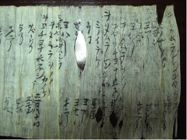 式次第及び用意するものの一覧であるが、2・3行目のコセトノこそ西暦900年から代々権宮司を務めておられた越権宮司のことである。 越権宮司も心経会にかかわっておられたことの証となる。越家は今も三輪のナカムラ(馬場区)に住まいがある。
